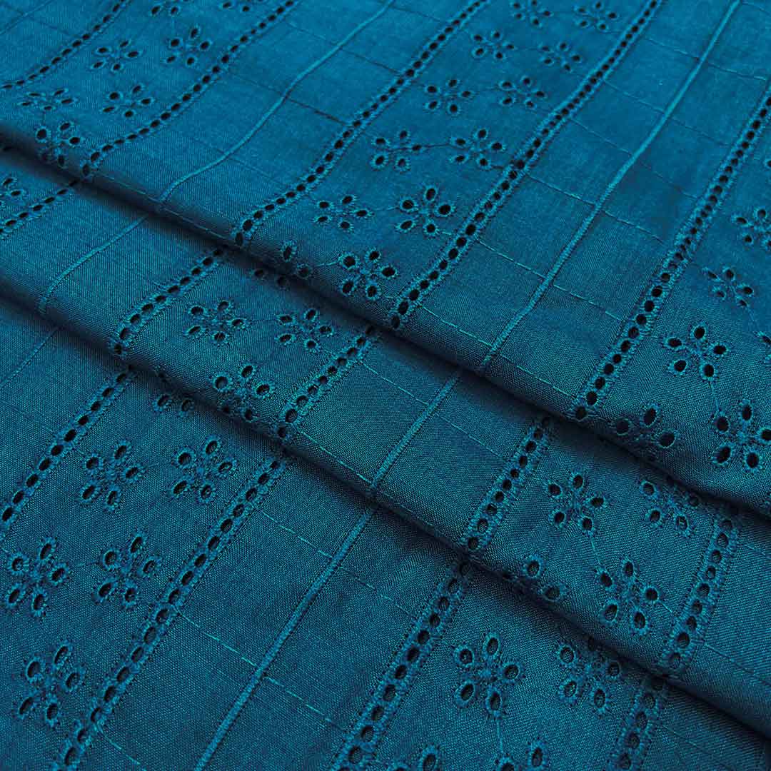Peacock Blue Embroidered Cotton Heavy Hakoba Fabric